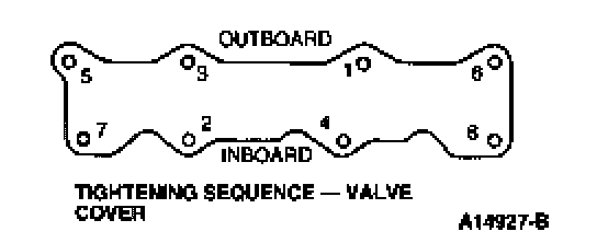 Position valve cover on the cylinder head and hand tighten retaining bolts and stud bolts. Then, tighten in sequence to 10-14 Nm (8-10 lb-ft).