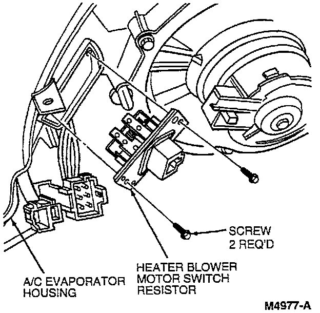 The assembly is located on the passenger side of the A/C evaporator housing behind the glove compartment.