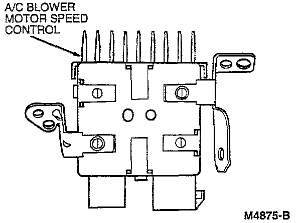 The A/C blower motor speed control is located under the A/C evaporator housing, to the left of the blower motor.