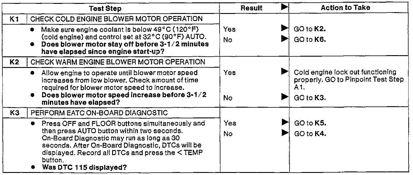 Cold Engine Blower Control - No Codes (Test Steps K1-K3):