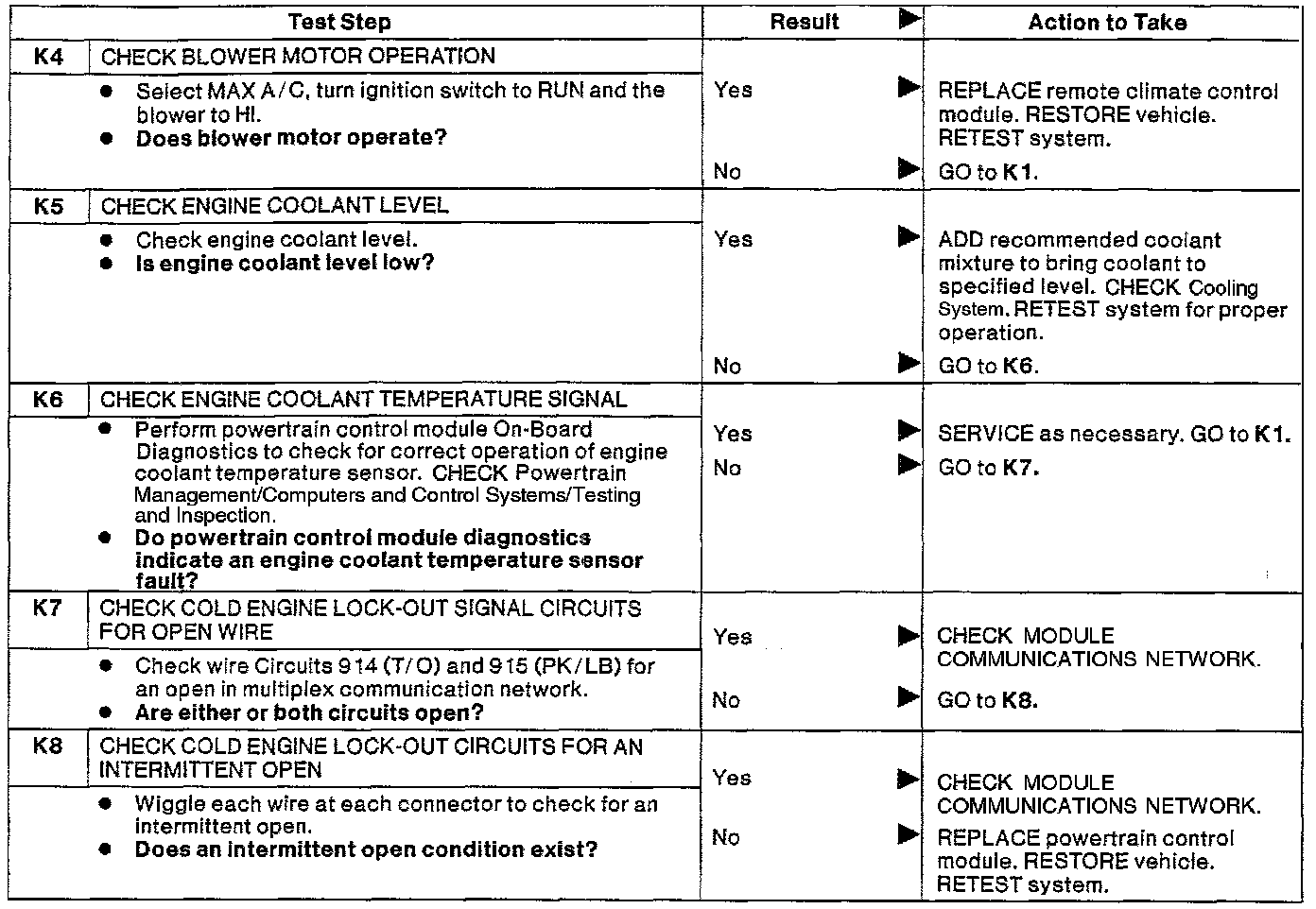 Cold Engine Blower Control - No Codes (Test Steps K4-K8):