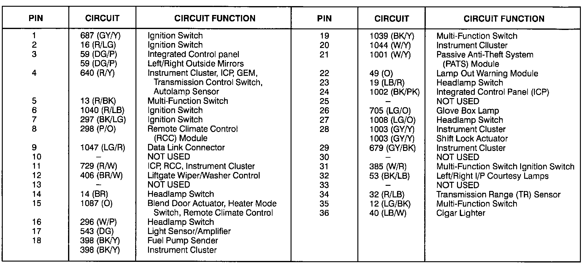 Instrument Panel Fuse Panel (Part 1 Of 2) (C247):