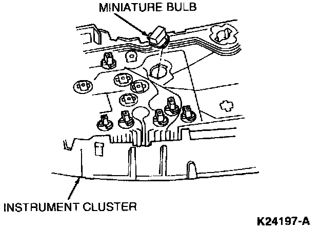 1. Turn miniature bulb socket 1/4 turn counterclockwise to align tabs with slots in instrument cluster and pull miniature bulb out of instrument cluster.