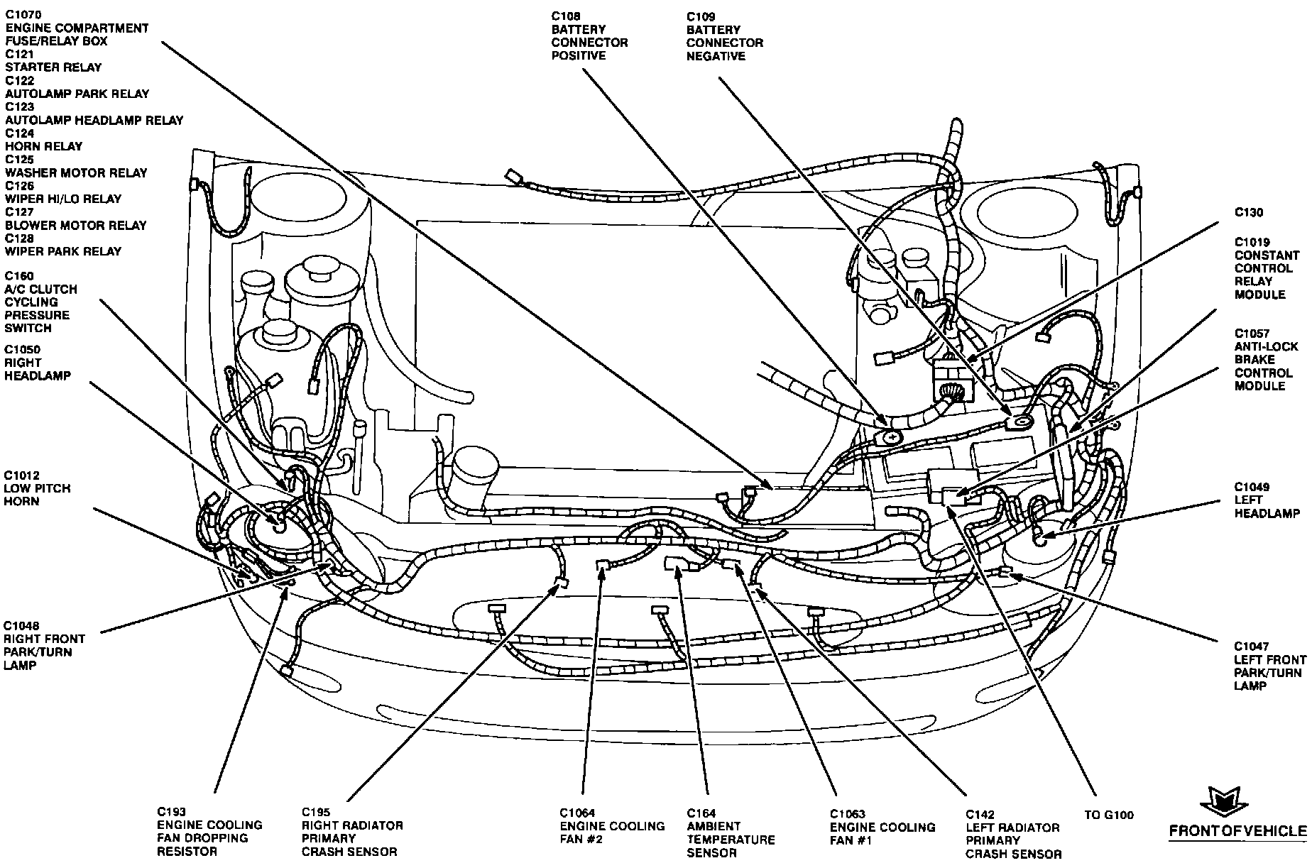 The Constant Control Relay Module is located on the left side of the battery, behind headlamp.