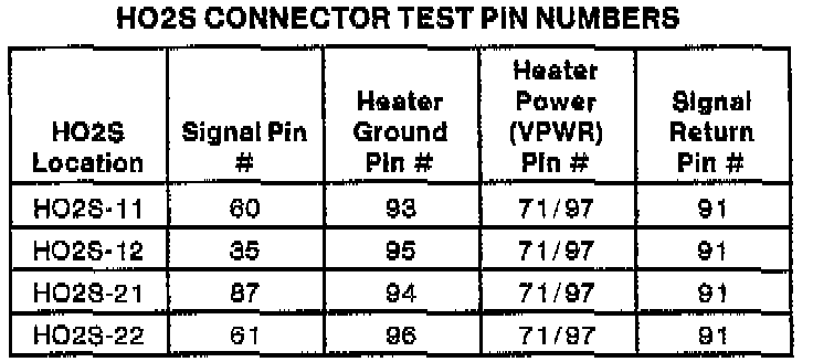 HO2S Connector Test Pin Numbers: