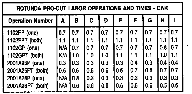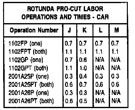 2. Pro-Cut Technical Support: (800) 543-6618 Reference list for Pro-Cut car labor operations: