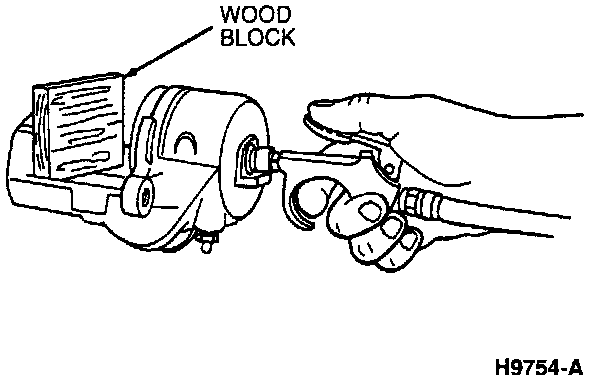 CAUTION: Do not use a screwdriver or any similar tool to pry piston out of bore. It will result in damage to piston. Cushion piston's impact against caliper when blowing it out of bore by placing a wooden block or shop towels between piston and caliper bridge.