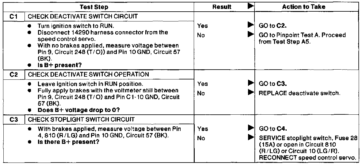 Test C: Speed Control Does Not Disegage When Brakes Are Applied.: