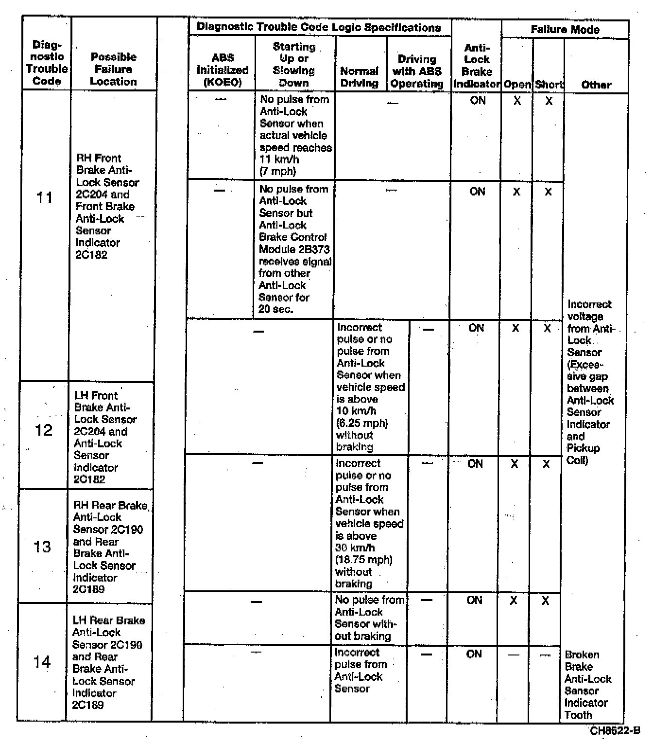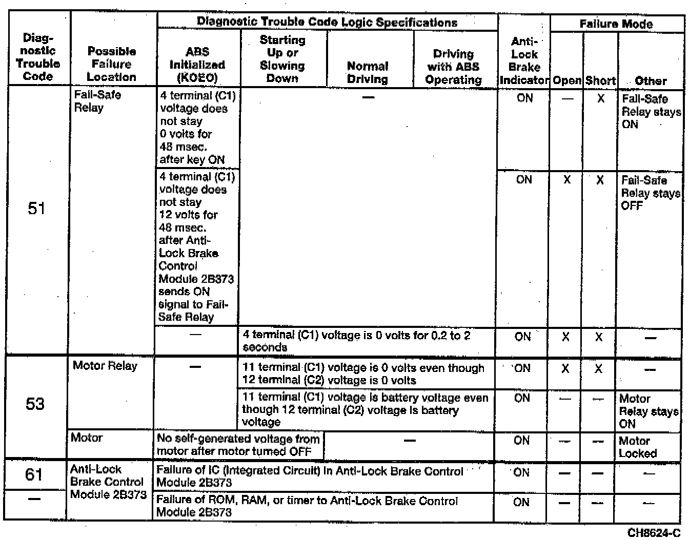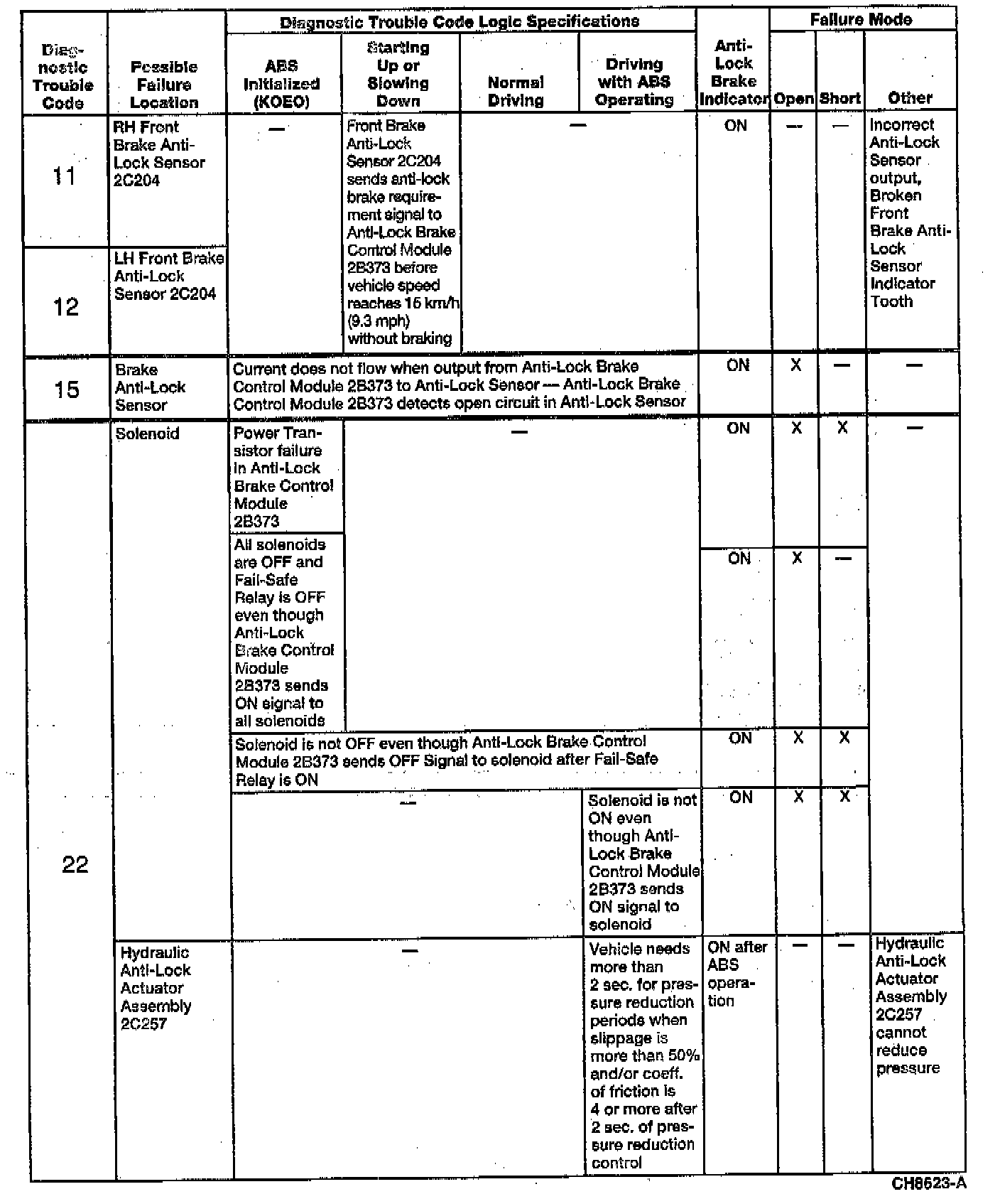 Anti-Lock Brake Control Module Logic Specifications for Diagnostic Trouble Codes