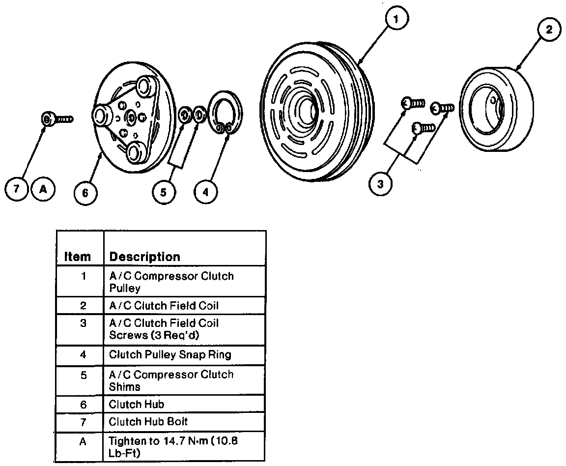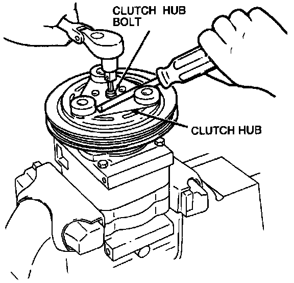 2. Place A/C compressor in a vise and remove the clutch hub bolt.