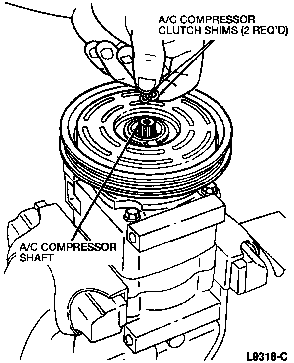 4. Remove the two A/C compressor clutch shims from the A/C compressor shaft.