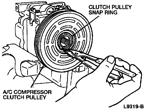 6. Lift the A/C compressor clutch pulley from the A/C compressor.