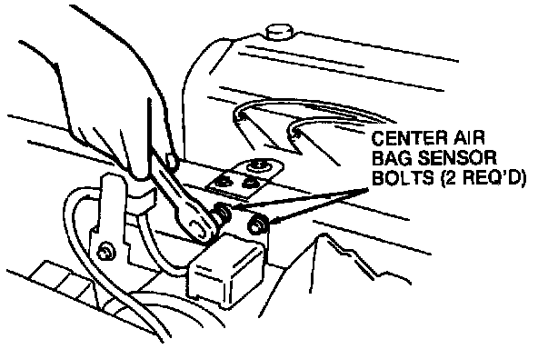 5. Remove the center air bag sensor and bracket cover and the two center air bag sensor and bracket bolts and position the center air bag sensor and bracket out of the way.