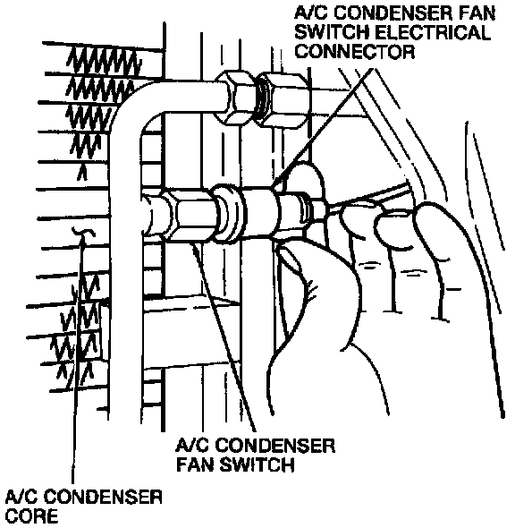 8. Disconnect the A/C condenser fan switch electrical connector.