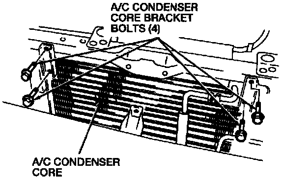 9. Remove the four A/C condenser core bracket bolts.