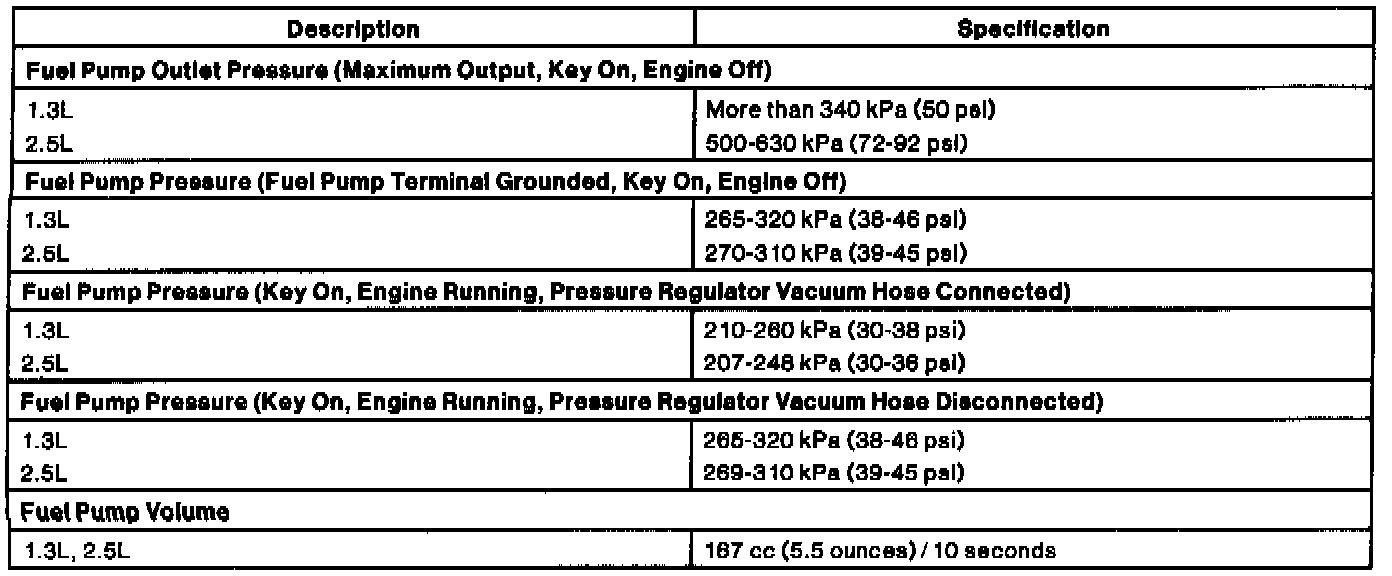General Fuel Delivery System Specifications