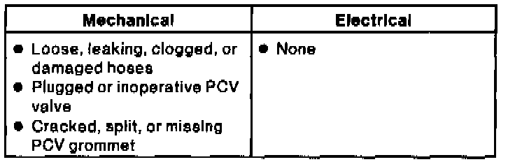 - Positive Crankcase Ventilation (PCV) valve and related vacuum lines.