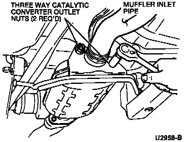 7. Remove and discard the exhaust converter outlet gasket between the three way catalytic converter and the muffler inlet pipe.