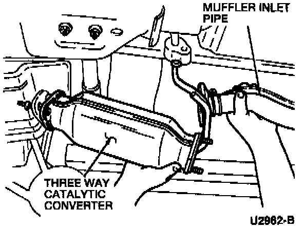 6. Separate the three way catalytic converter from the muffler inlet pipe and remove the converter.