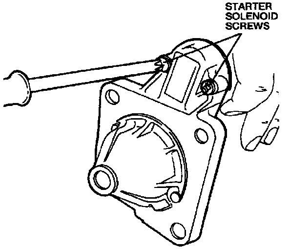 10. Position the starter solenoid and install the starter solenoid screws.