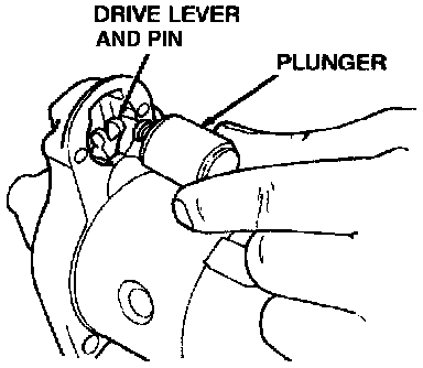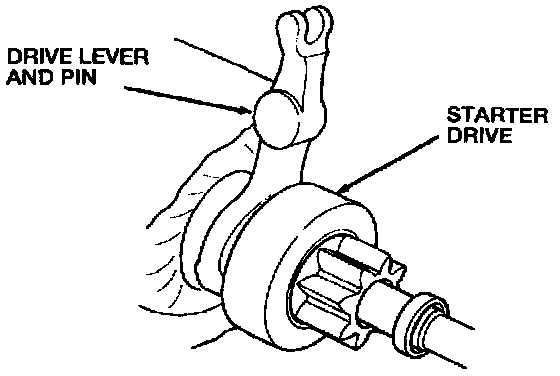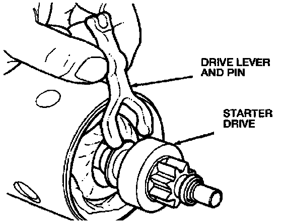 8. Remove the drive lever and pin from the starter drive.
