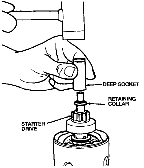 10. Use a deep socket or similar tool to drive the retaining collar from the starter drive stop ring.