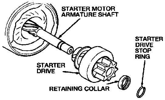 12. Remove the retaining collar and starter drive from the starter motor armature shaft.