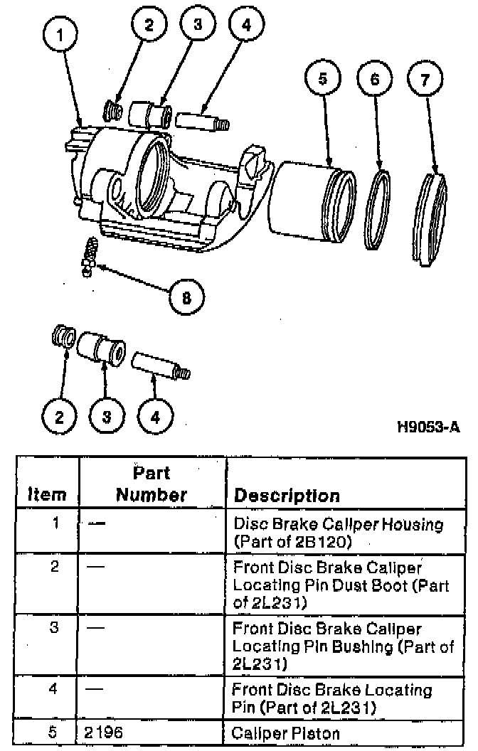 Single Piston Caliper Component Location (Part 2 Of 2):