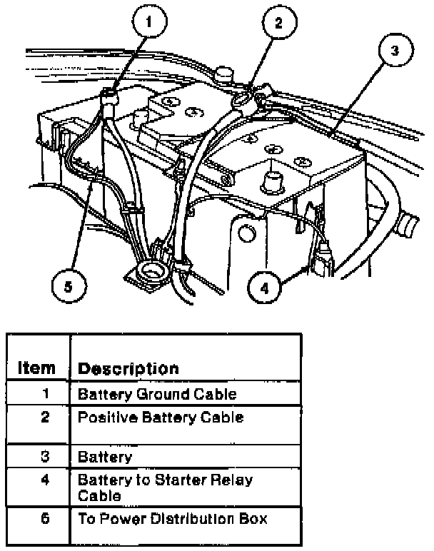 1. Clean battery cable terminals and battery hold down clamp with a wire brush. Replace all cables or parts that are worn or frayed.