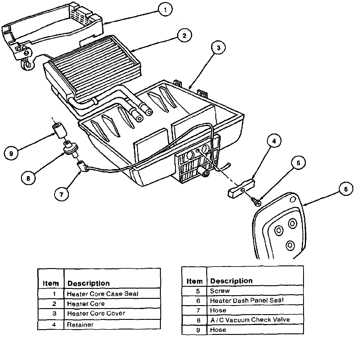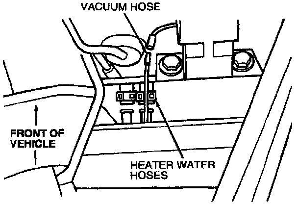 8. Remove heater dash panel seal and vacuum hose from heater core cover.
