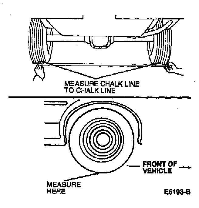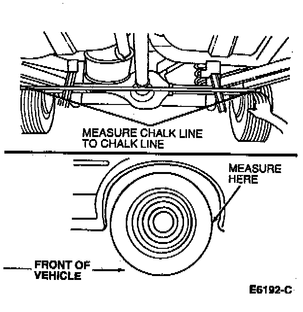 3. Adjust both wheels so that the markings face the front of the vehicle. Using a tape measure, measure the distance between marks and record this reading Front reading).