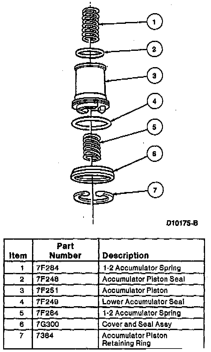 8. Assemble the components for 1-2 accumulator in the following order: