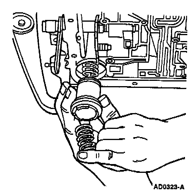 1. Install reverse band servo spring, reverse band servo piston and rod. When piston and rod assembly replacement becomes necessary, or when the reverse band has been replaced, determine the correct length of the reverse servo piston and rod, proceed as follows: