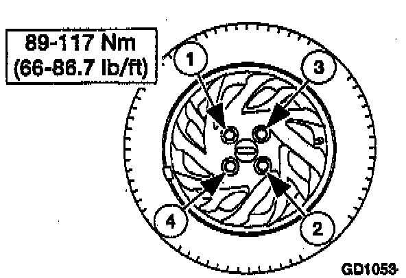 NOTE: The lug nuts must be installed and tightened in sequence to specification as shown to ensure that the wheel is matched to the wheel hub properly.