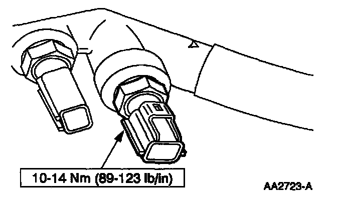 NOTE: Coat the threads of the ECT sensor with ford pipe sealant with Teflon (R) D8AZ-19554-A or equivalent meeting ford specification WSK-M2G350-A2 prior to installation.
