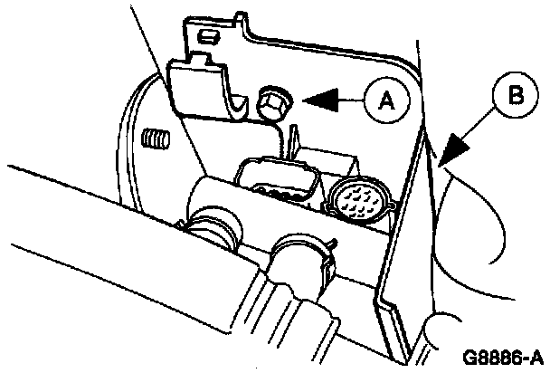 3. Remove the (A) bolt and position the (B) fuel charge wiring support bracket aside.