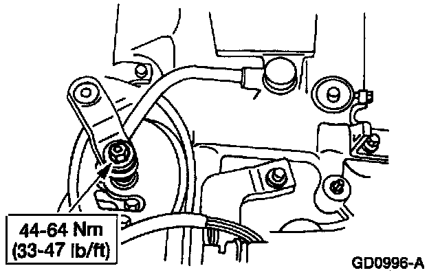 4. Install the shift cable and bracket and nut to specifications.