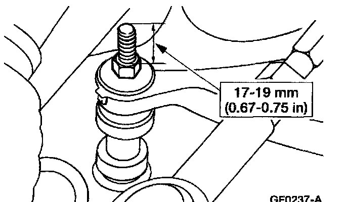 2. Tighten the front stabilizer bar link nuts so that 17-19 mm (0.67-0.75 inch) of thread is exposed.
