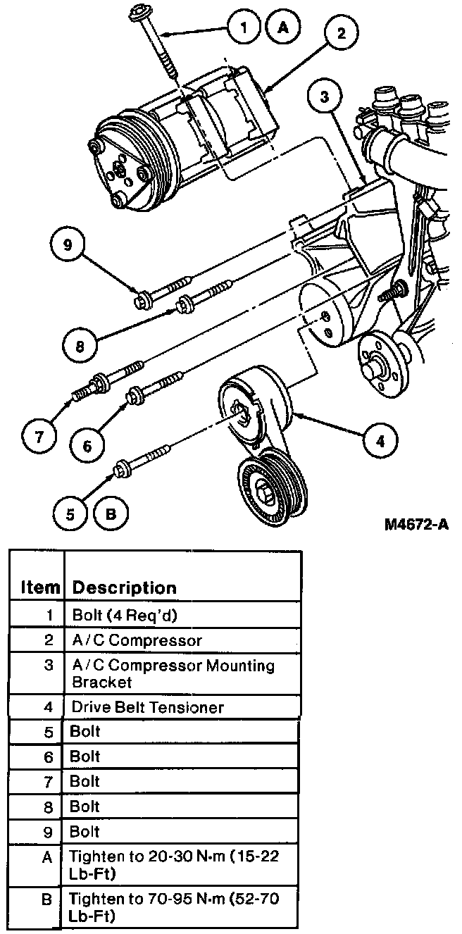 1. Install A/C compressor mounting bracket with four retaining bolts.