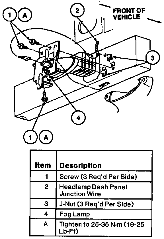2. Remove two screws retaining fog lamp to fog lamp mounting bracket.