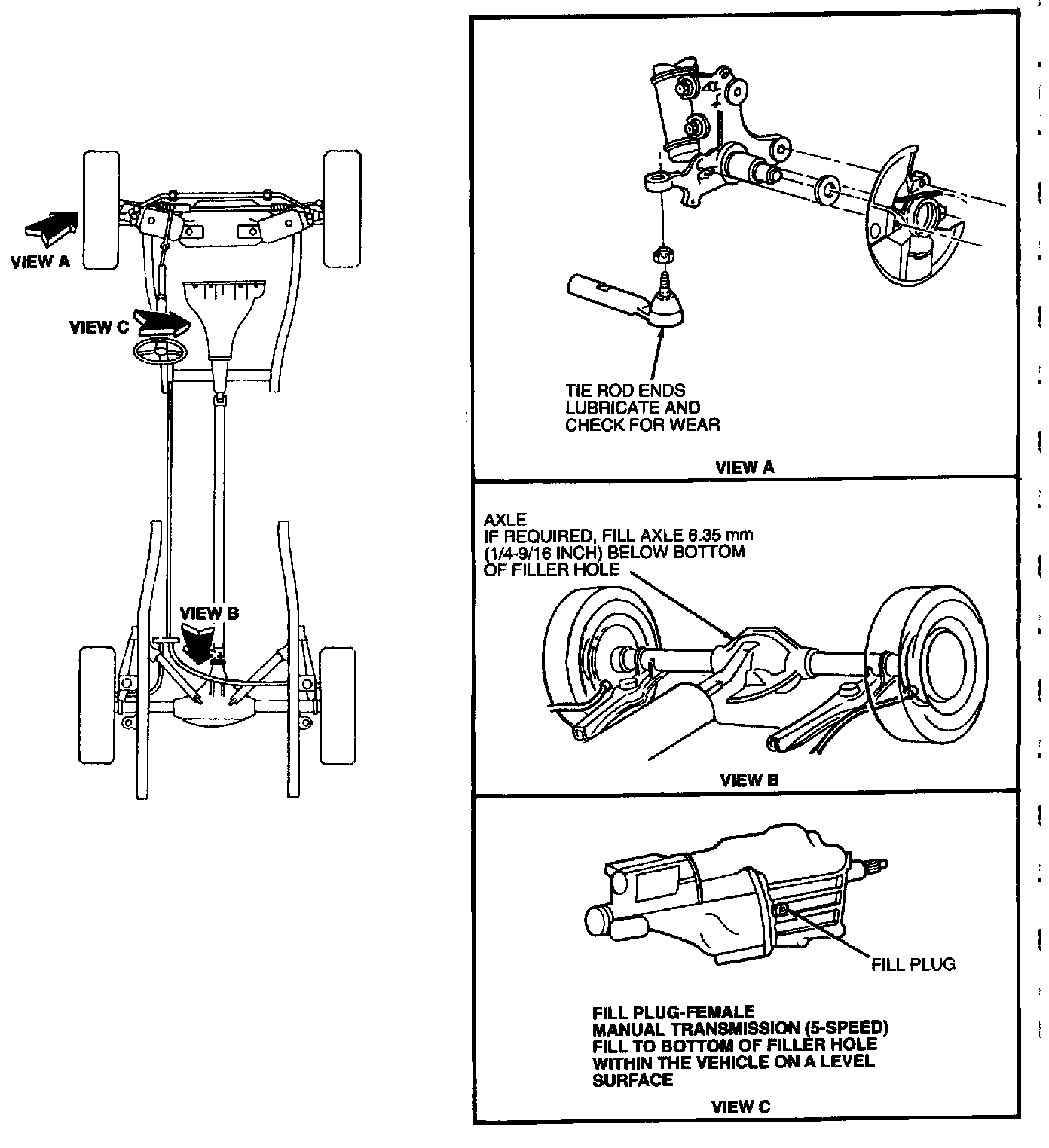 Rear axle lubricants must be replaced at 100,000 miles (160,000km) or if the axle has been submerged in water. Otherwise, the lubricants should not be checked or changed unless a leak is suspected or service is required.
