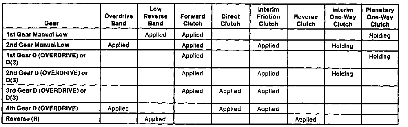 Band/Clutch Application Chart:
