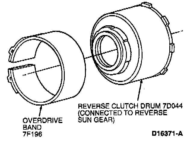 The overdrive band holds the reverse clutch drum stationary in fourth gear and in manual range second gear. This action causes the reverse sun gear to be held in these ranges.
