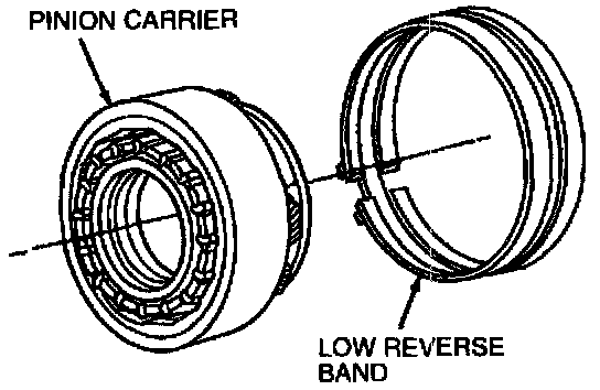 The low and reverse band holds the pinion carrier stationary in reverse. It is also applied in first gear, manual 1 range, to provide engine braking.