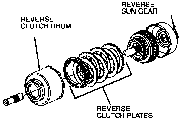 The reverse clutch couples the input shaft to the reverse sun gear. It is applied in reverse range only.