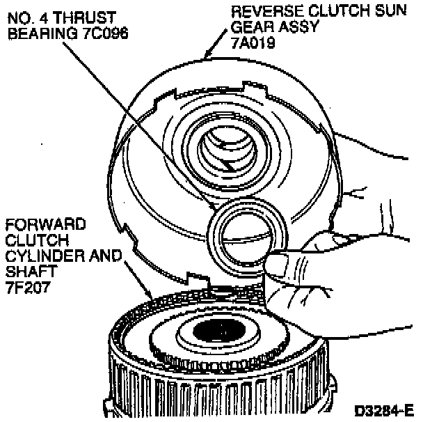 1. Remove the No. 4 thrust bearing from reverse sun gear assembly.
