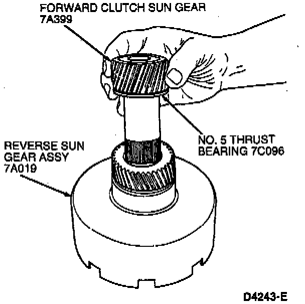 The forward clutch sun gear and reverse sun gear assembly is assembled as part of the transmission assembly procedure.
