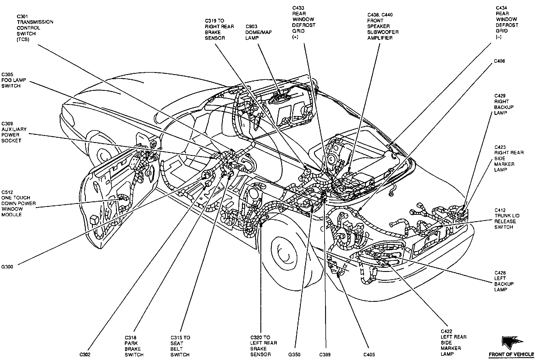The One Touch Down Power Window Module is located at the lower rear of the LH door.
