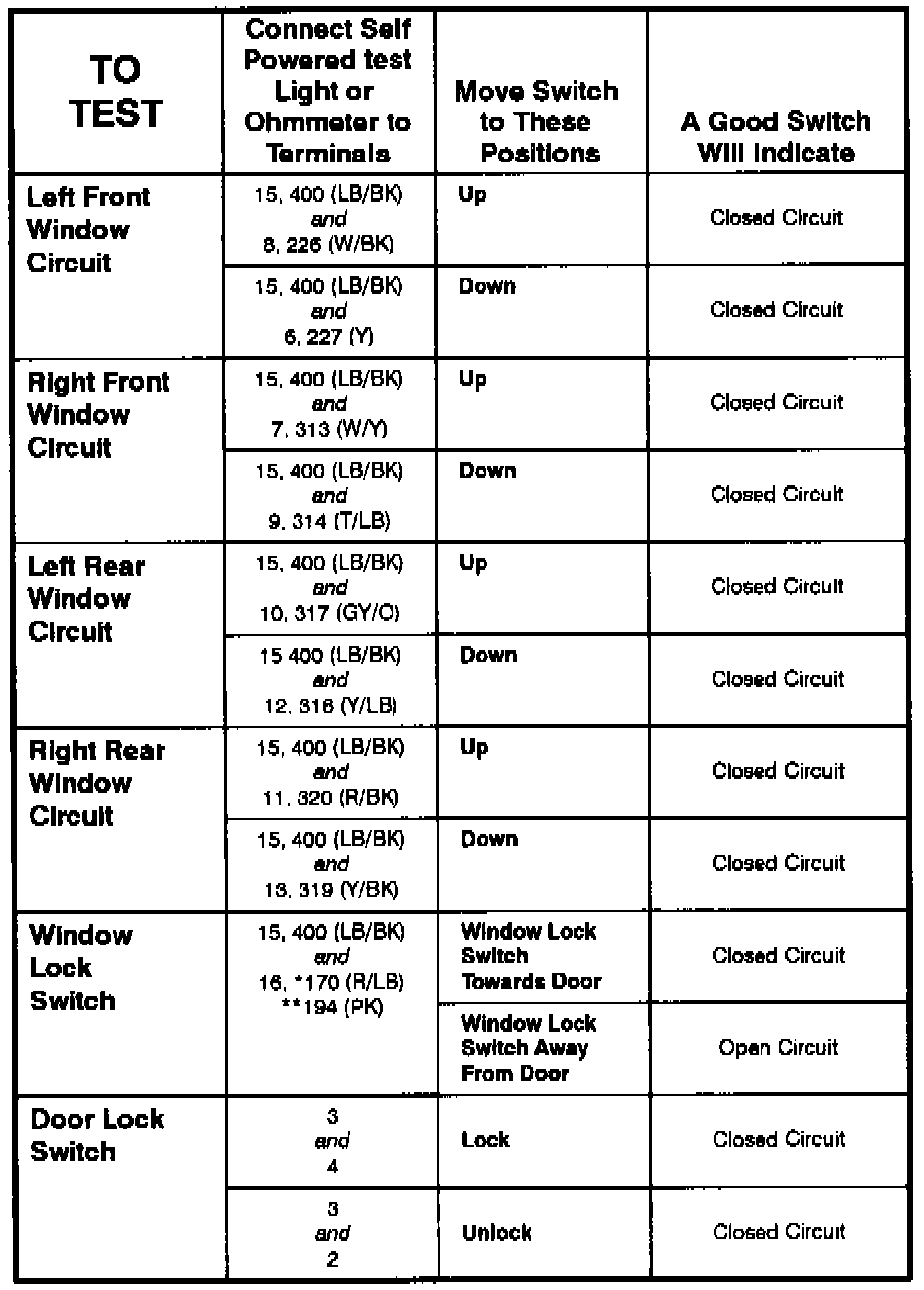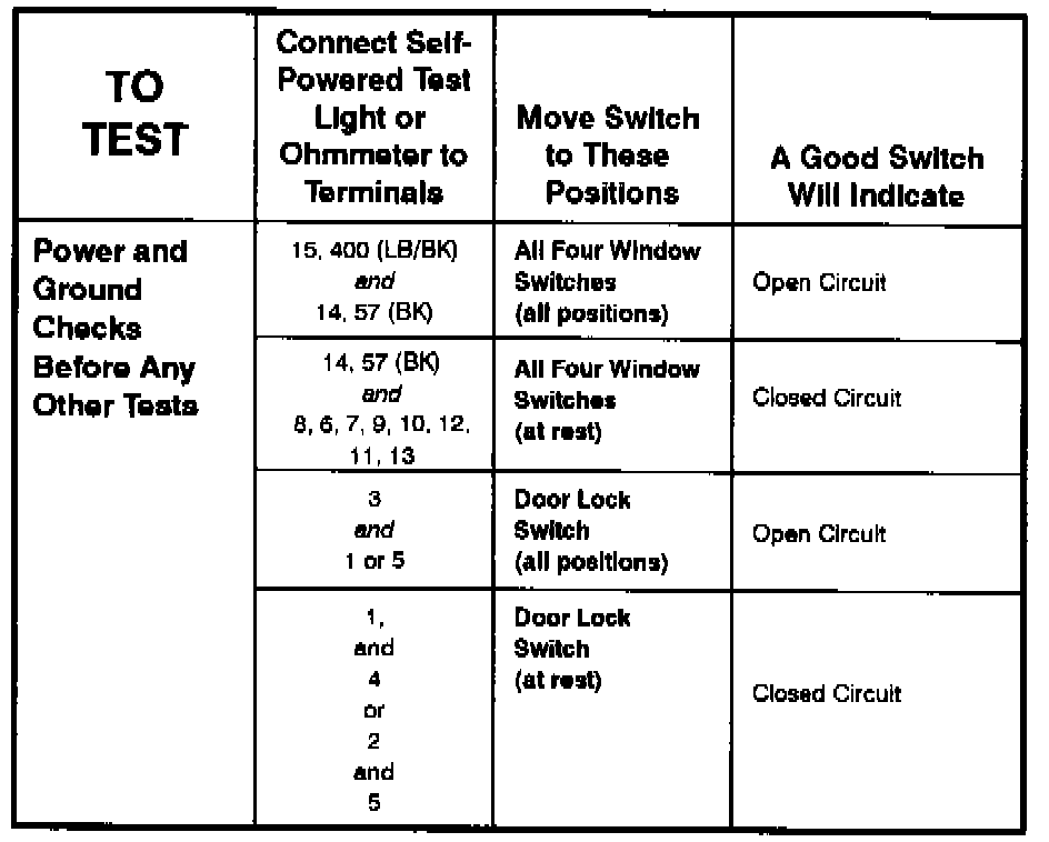 Master Window/Door Lock Control Switch - Component Testing Procedure (Part 2 Of 2) (Convertible):