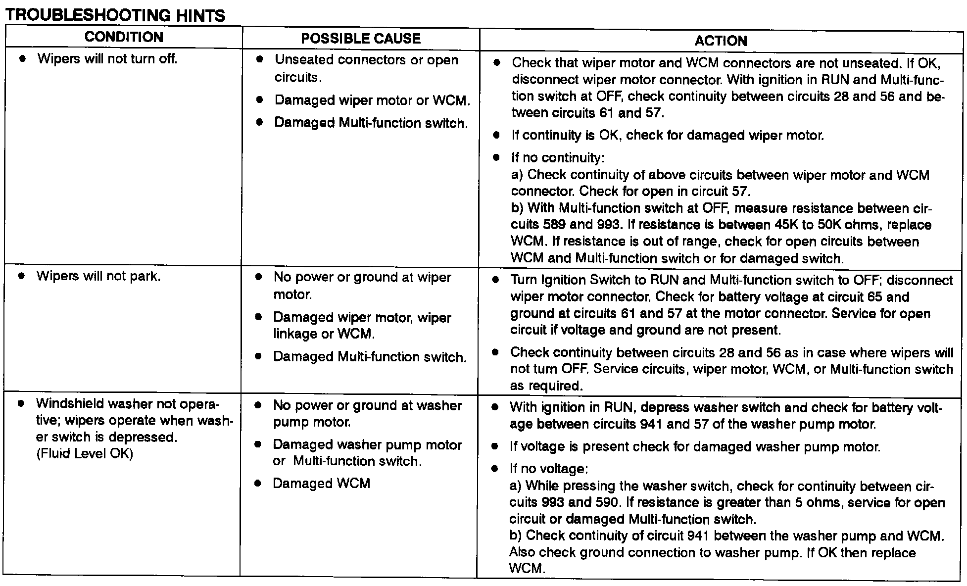 Interval Wiper/Washer - Troubleshooting Hints (Part 2 Of 2):